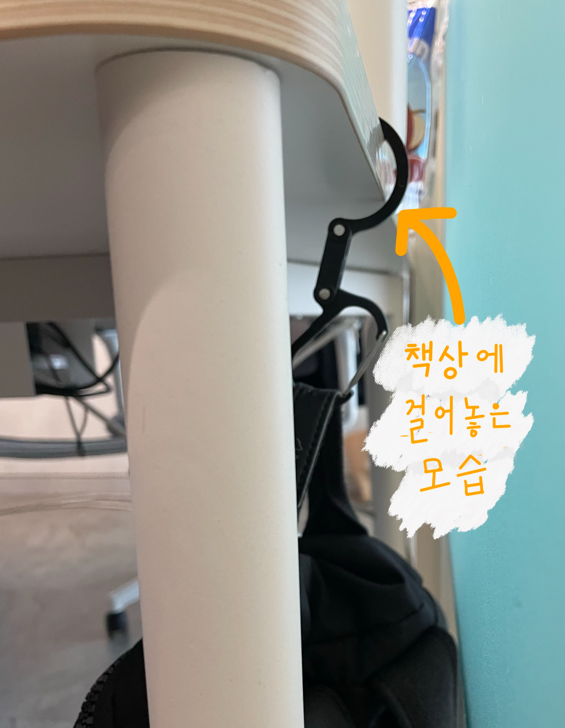 아래 사진과 같이 회사 자리가 좁은데 가방을 걸어두고 싶을떄