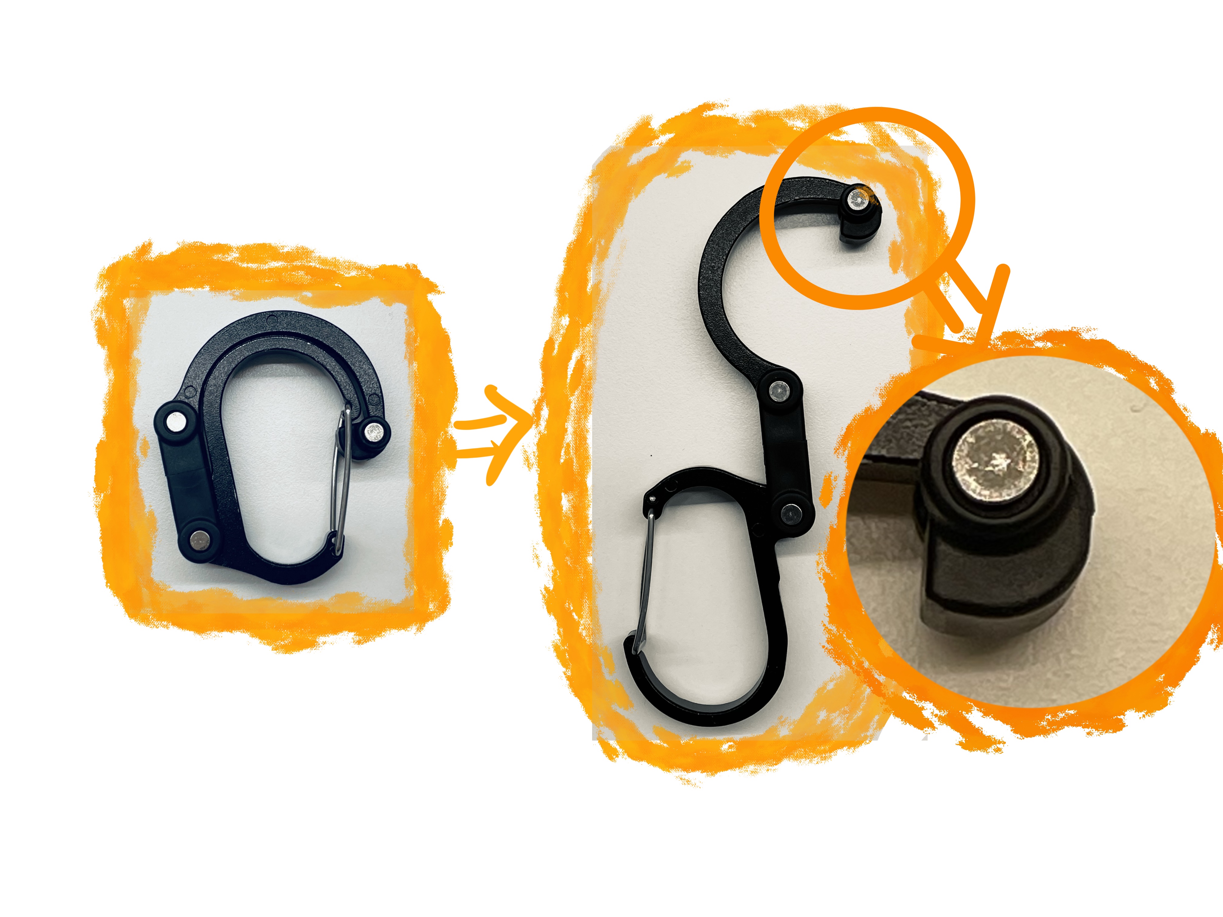 다양한 카라비너를 사용하고 있었는데요 "히어로클립 카라비너"는 펼치면 고리가 뿅하고 나와